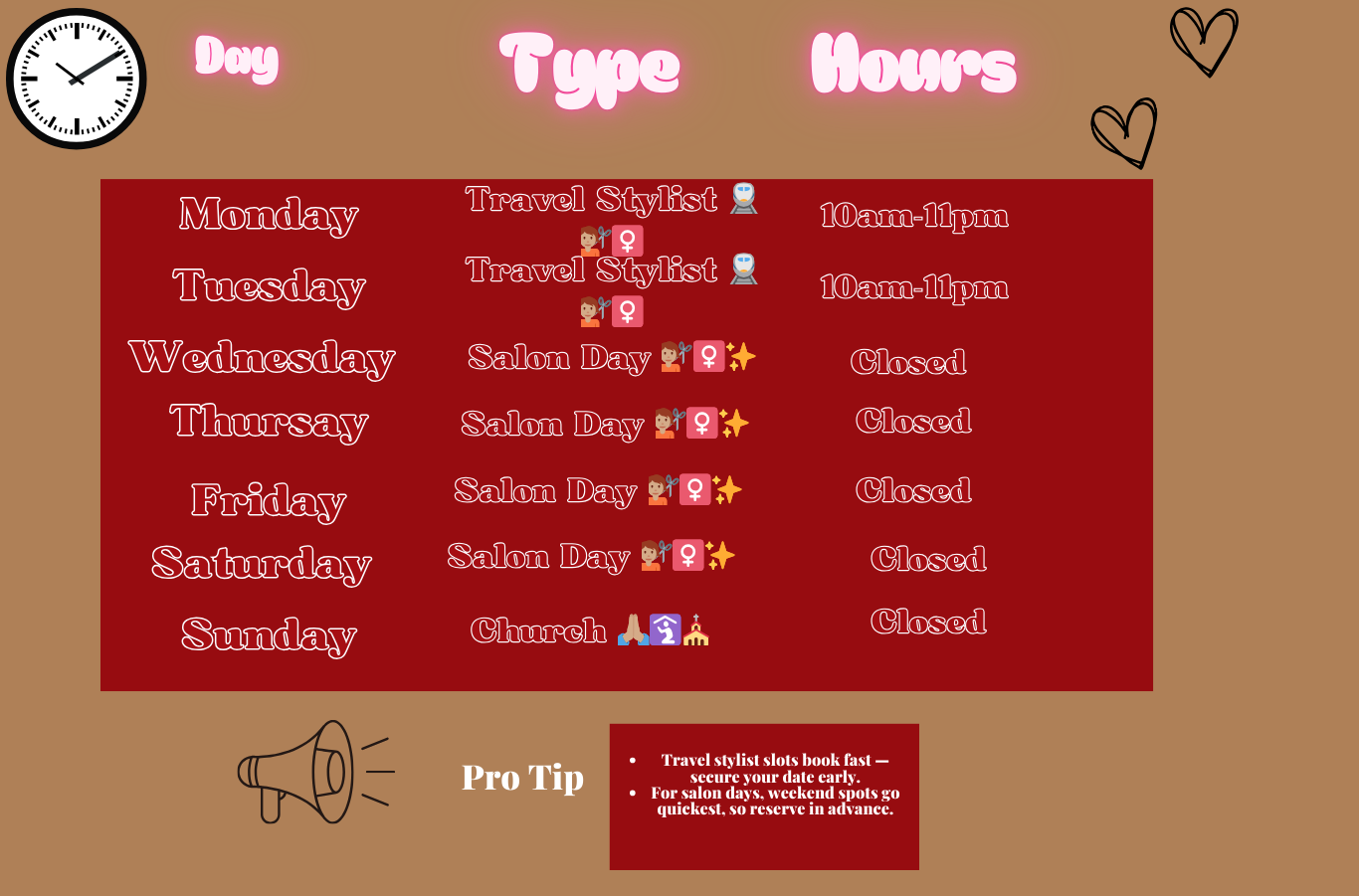 Our Styling & Locs services offer everything from intricate braiding and twists to expertly crafted locs and other natural styles. Whether you're looking for a protective style, a bold new look, or something classic, our artistry and attention to detail ensure that you’ll leave with a style that’s not just well-executed but truly slayed. We take pride in transforming your vision into a reality, one braid, twist, or loc at a time.